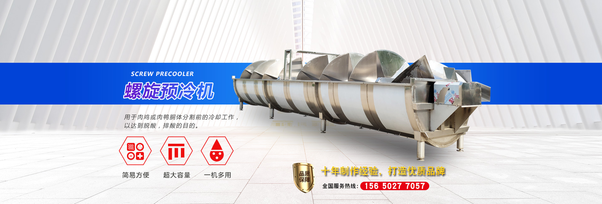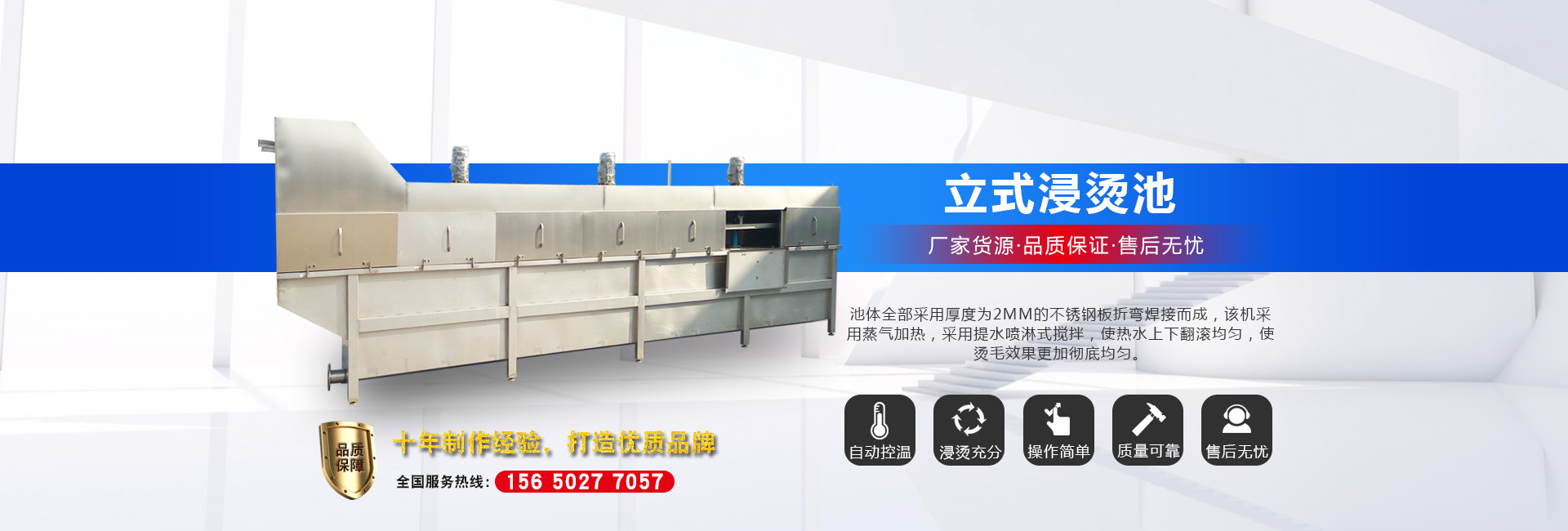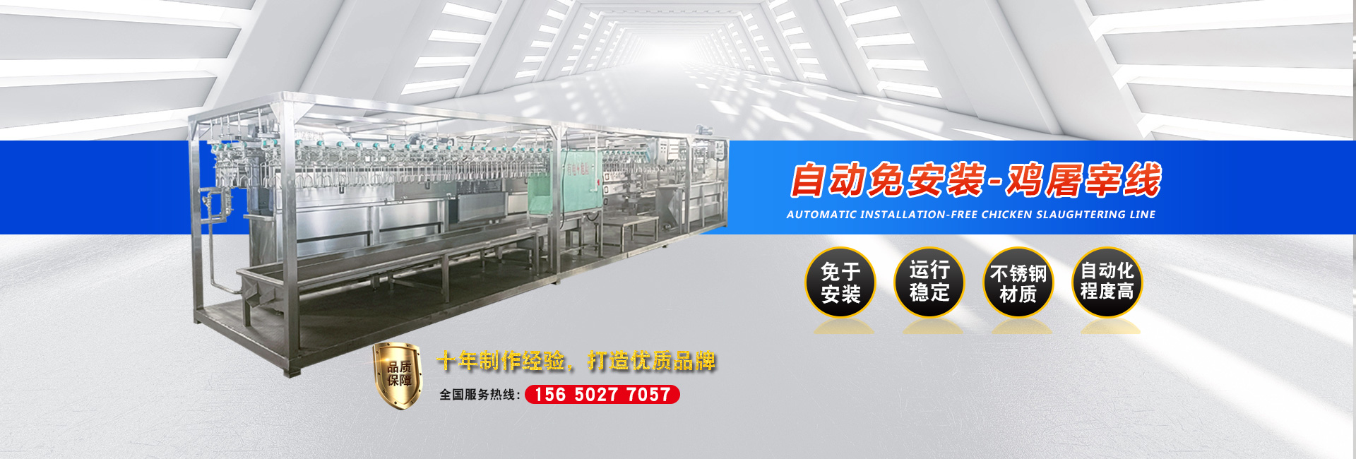 公司長期與國內外屠宰加工企業(yè)合作,走引進——消化——創(chuàng)新和自主研發(fā)相結合的道路,在國內外同類產品的基礎上,不斷更新和改造。公司主要設備有:A字型立式脫毛機、臥式脫毛機、強力噴淋機、松毛機、浸燙池、螺旋預冷機、禽籠清洗機、電暈機、兔扯皮機、兔割前爪/后爪機、剝胗機、自動洗鉤機、螺旋燙爪機、雞爪脫皮機、分割輸送帶等屠宰用設備。其中,公司獨力發(fā)明生產設計的“電動調節(jié)脫毛機”及“自動控水控溫浸燙池”順利通過知識產權局的實質性審查。公司所生產的設備 可與國外同類產品配套使用,設備遠銷阿爾及利亞、澳大利亞等中東、非州等并建立了長期穩(wěn)定的合作關系。